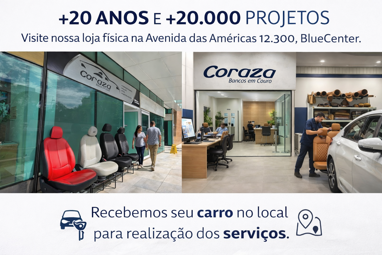 Há +20 anos, a Coraza entrega o que há de melhor em bancos automotivos. Nosso compromisso é com o resultado final e a satisfação absoluta de quem não abre mão da qualidade. Contamos com uma equipe experiente, pronta para oferecer soluções sob medida que valorizem seu patrimônio. Da escolha do material à entrega final, o padrão Coraza garante um acabamento superior e atendimento personalizado.